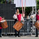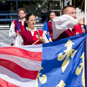Képgaléria - A Pavane Táncegyüttes zászlóforgatóinak műsora a Forum színpad előtt
