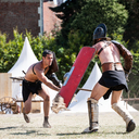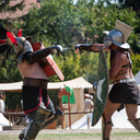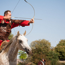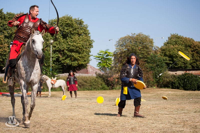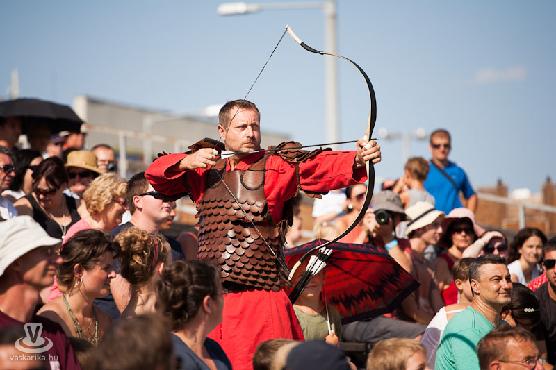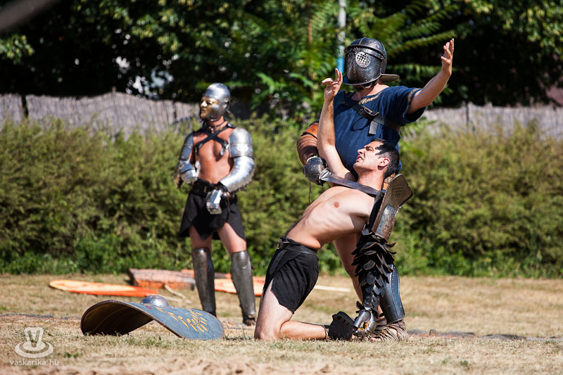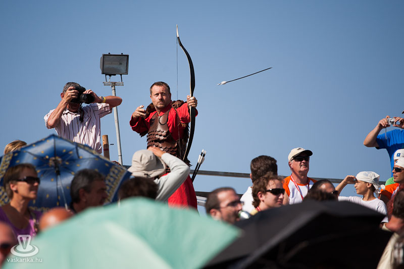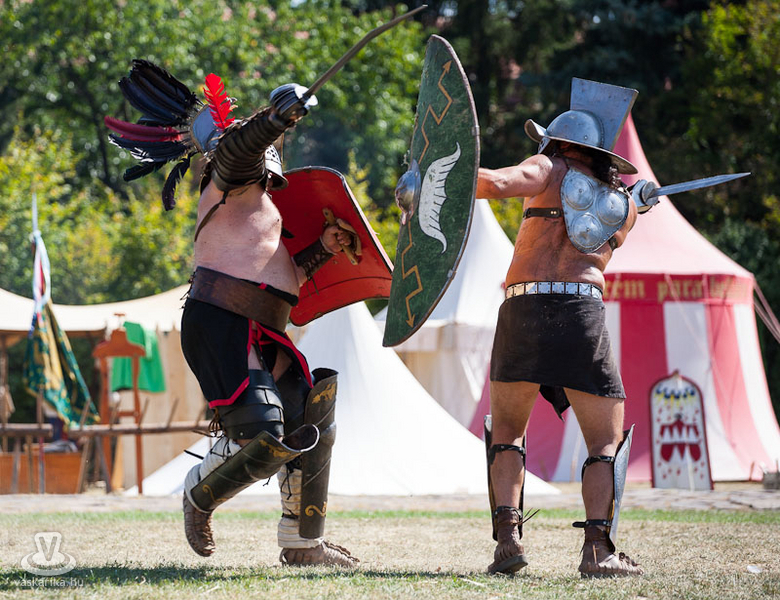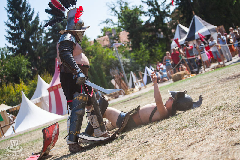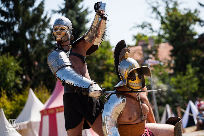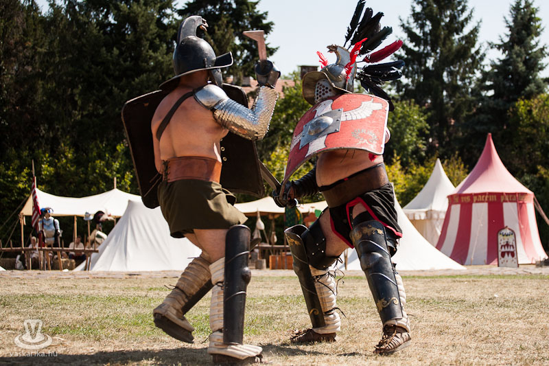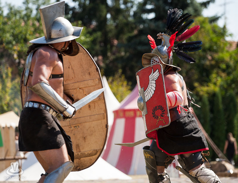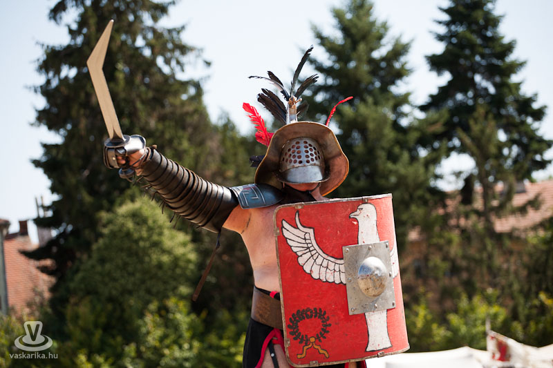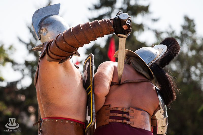 A Történelmi Témaparkban a Collegium Gladiatorium Egyesület gladiátorjátékát, a késő római hadviselést, a Bulcsu Vezér Hagyományőrző Egyesület bemutatóját és Kassai Lajos lovasíjász csapatának fellépését örökítettük meg szombaton.