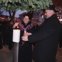 A Promenádon elhelyezett adventi koszorú harmadik gyertyáját Horváth Gyuláné, az FSE elnöke, 2013-ban Vas Megye Prima-díjas jelöltje és Kovács András városi képviselő gyújtotta meg.