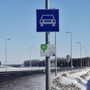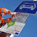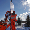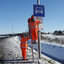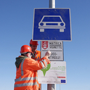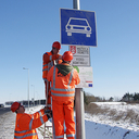 A Magyar Közút Nonprofit Zrt. munkatársai eltávolították az útdíjtáblát az M86-os autóútról Szombathelyen, 2015. január 31-én.