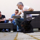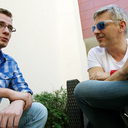 Az év első igazán tavaszi, sőt szinte nyári napján ültünk ki a Weöres Sándor Színház teraszára, ahol Alföldi Róbert és Panka kutyája fogadott minket.