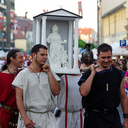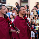 Ismét tízezrek látták augusztus 28-án, pénteken a XVI. Savaria Történelmi Karnevál leglátványosabb programját, a jelmezes felvonulást. A lemenő nap fényénél, a Történelmi Témaparkból induló impozáns menetet ezúttal is hagyományőrök, mutatványosok, gólyalábasok, dobosok, zenészek, tűznyelők és tűzfújók, valamint zászlóforgatók tarka-barka serege tette emlékezetessé.