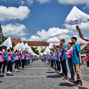 Május 20-án pontosan 12.00 órakor sípszóra indult a napóleoni időben élt arisztokrácia divatos tánca, a francia négyes Szombathely Fő terén, körülbelül 300 diák részvételével.