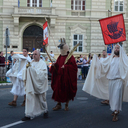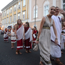 Ismét tízezrek látták augusztus 26-án, pénteken a XVII. Savaria Történelmi Karnevál leglátványosabb programját, a jelmezes felvonulást. A lemenő nap fényénél, a Történelmi Témaparkból induló impozáns menetet ezúttal is hagyományőrök, mutatványosok, gólyalábasok, dobosok, zenészek, tűznyelők és tűzfújók, valamint zászlóforgatók tarka-barka serege tette emlékezetessé.