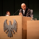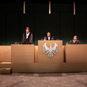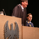 A német sztárügyvédből lett drámaíró Ferdinand von Schirach 45 éves korában kezdett el írni. Első színpadi művét, a Terrort 2015 októberében egyidőben mutatta be a Deutsches Theater Berlin és a Schausspiel Frankfurt. A Weöres Sándor Színház által színre állított lélektani drámát Jordán Tamás rendezte, bemutató február 8-án.