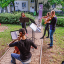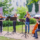Június 9-én Szombathely lakótelepi erkélyközönségének adott minikoncertet az Ad Hoc Vonósnégyes.