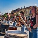 Vasárnap délután a Kőszeg főterének fő látványosságát a taiko dobok és megszólaltatóik jelentették. Az Ataru Taiko dobegyüttes a TérZene program részeként varázsolt energikus ütős show-t a térre.