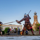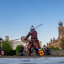 A Magyar Géniusz Vándorkiállítás kísérőprogramjaként az államalapítás korszakából láthattak fegyver- és harcbemutatót az érdeklődők az Iseum udvarán a Nyugati Gyepűk Pajzsa Haditorna Egyesület jóvoltából pénteken este.