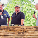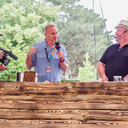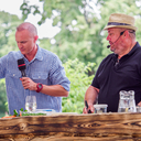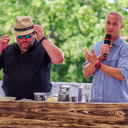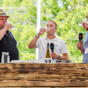 Kapros nyúlragulevest főzött krumpligombóccal a gyógy-bor napok nulladik napján Nika Róbert, helyi gasztrobarát, Szép Bence konferanszié és Tóth Tamás fesztiváligazgató. Az idei gasztroshow a nyúlhús elkészítésére fókuszál, egy nem túl szerencsés szójátékkal élve így lesz a tapsi fülesből tepsi füles.