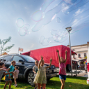 Biztosan a Körmendi Napok legvidámabb szeglete a Szabadság tér gyerekek számára "berendezett" része, ahol óriásbuborékokat lehetett fújni és durrantani. Utánpótlás kosáredzőknek érdemes lett volna kijönni és felmérni, mekkorát emelkednek a kisklambók egy-egy buborék kidurrantásáért, a harcművészet tudorainak pedig az ugrálóváras figurákon bemutatott "formagyakorlatok" miatt. Kitelepült a büntetés-végrehajtás is, és a gyerkőcök választ kaphattak az "Apu, hogy megy be..." kérdésre. Hát vezetőszáron. A rabomobilba. Szerencsére ki is jött, és hepiend lett a történet vége, ahogy ez a kis zöld sziget is csupa mosoly és vidámság volt augusztus 19-én.