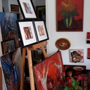 Szendiszűcs István képei mellett Nagy Judit műteremtő tűzzománcai, Tompó Erzsébet üvegcsodái, Boda Cila nemezei és egyéb gyönyörűségek várták a Mediterrán Udvarba látogatókat. Külön érdekesség volt Kiss Szilárd kissé meghökkentő lepke- és rovargyűjteménye, valamint ezekhez kapcsolódó útiélményei. A művésztér hangulatához passzoló muzsika sem maradhatott el a nyári délutánból, Horváth Dudu Dániel és Kulhay András duójának minikoncertjét élvezhette a művészetpártoló közönség.