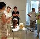 Czenki Zsuzsanna, a Savaria Múzeum általános igazgatóhelyettese tárlatvezetésével tekintette meg a Vas Megyei Reumaklub Simon Zsolt József keramikus művész “Áramlás” című kiállítását, mely július 6-ig várja az érdeklődőket.