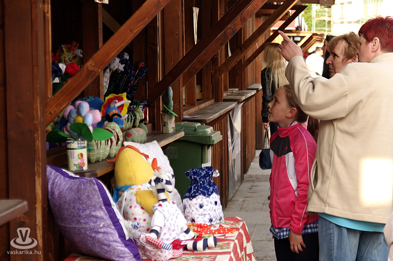 A kiállítás után a térre lépve egy egészen más világ fogad minket. A fabódékból finomabbnál finomabb illatok csiklandozzák az orrunkat, innen onnan rég látott ismerősök köszönnek ránk. Gyerekek nevetése tölti be a teret, akik szívesen gyűlnek össze Hidasi Györgyné kreatív kézimunkái előtt, amiket az Európa Napok során megvásárolhatunk. Ennél a bódénál lehet kockás a zsiráf, pöttyös a hernyó, és hazavihetünk egy egy szál soha nem hervadó, egyedi tulipánt is.