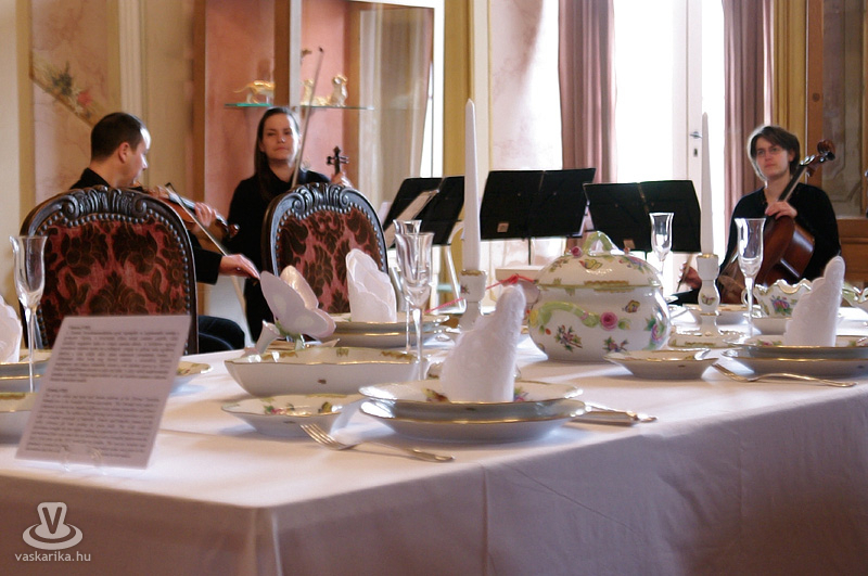 A kiállításon járkálva felfedezhettünk kínai stílusú dekor krizantémokat ábrázoló készletet éppúgy, mint a nemesen egyszerű, Batthyány mintás tárgyakat. Láthatjuk a Humboldt mintát, valamint Viktória királynő tiszteletére készített készletet is. A teremben önkéntelenül is félve járkálunk, érezzük azt a rengeteg munkát, amivel ezek a tárgyak készültek, érezzük a törékenységüket, és a hely adta különleges miliő hozzásegít ahhoz, hogy a múlt szinte tapintható lehessen a tárgyak közt járva.