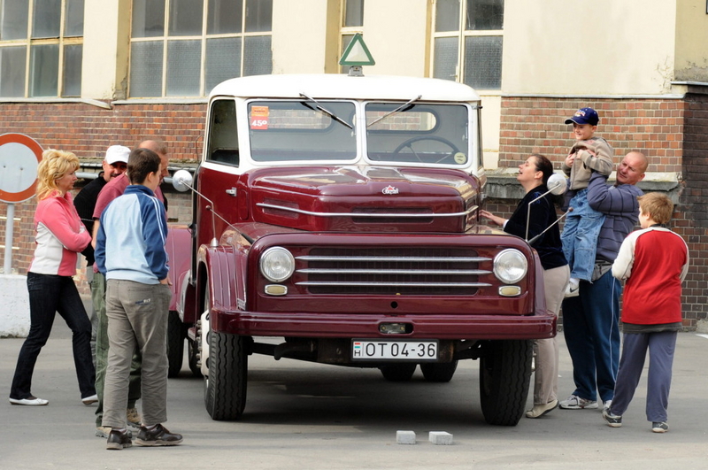 Érdeklődők egy Csepel D-450.N1 típusú nyerges vontatót néznek. MTI Fotó: Honéczy Barnabás