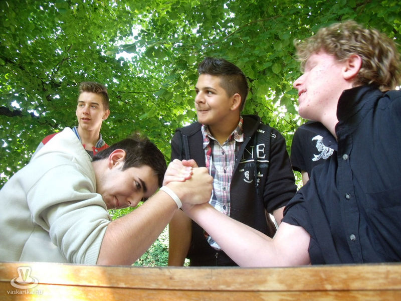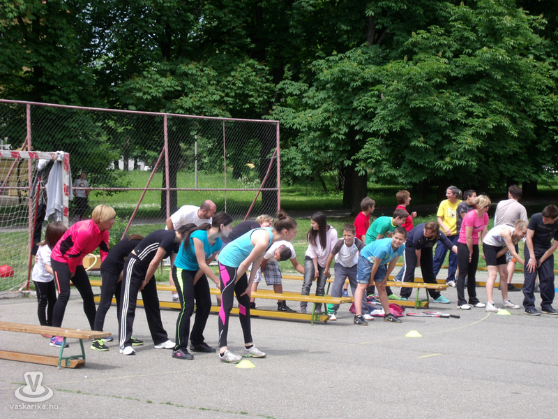 Nem múlhatott el ez a nap versenyek nélkül sem. A délelőtt folyamán lábteniszt játszhattak, az uszodában pedig vízilabdaversenyen vettek részt a tanulók. Délután több csapat- minden intézményegység kiállított egy-egy csapatot, így az eltérő tantervű Általános Iskola, a Beszédjavító Általános Iskola, a Speciális Szakiskola, a Kollégium és a Gyermekotthon külön fiú és leány csapata- részvételével sorverseny és focimérkőzések zajlottak. A sorverseny során kitétel volt, hogy minden csapatban 2 felnőttnek is részt kellett venni. Jó volt látni, miként bukfenceznek, futnak, s cipelnek medicinlabdát a felnőttek. A fociban külön csapatot alkottak a tanárok, idén a győzelem istennője megint kegyeibe fogadta őket, immáron több éve verhetetlenek.