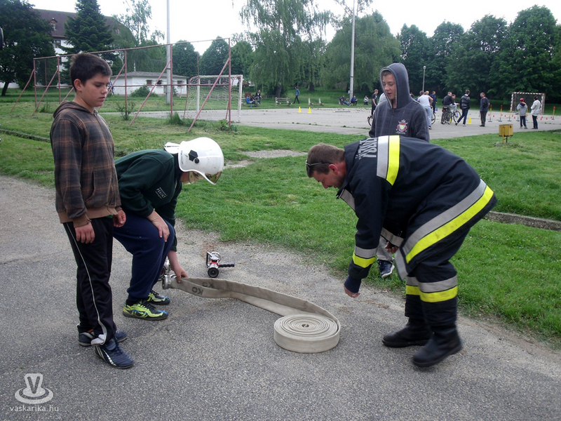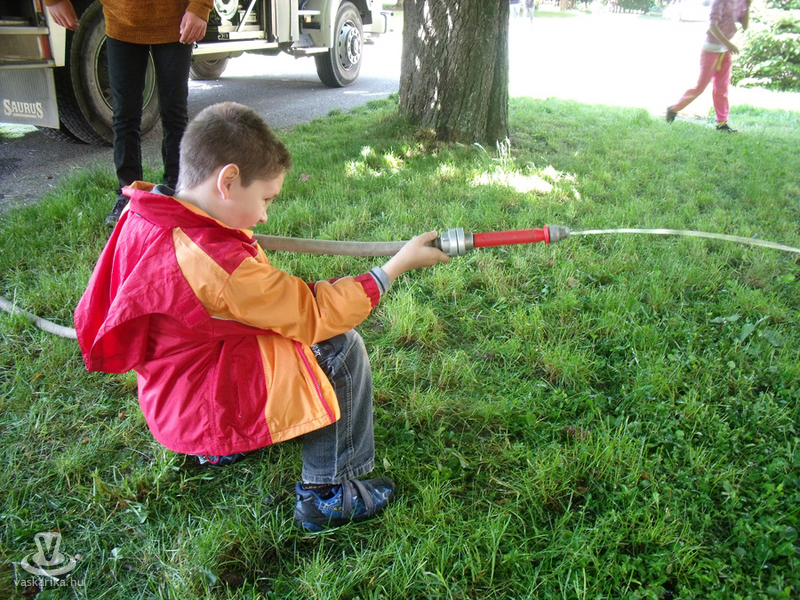 Erre a napra kivonult a kőszegi mentő-, rendőr- és tűzoltócsapat is. Na, nem mintha baj lett volna, nem riasztásra jöttek, hanem hogy pár órára a gyerekek kipróbálják ezeket a foglalkozásokat. Voltak, akik szívesen beültek az autókba a kormány mögé és büszkén feszítettek egy-egy fénykép erejéig. A mentőautó mellett sebeket kötöztek, vagy egy ambu babán az újraélesztés egyes fogásait próbálták ki. A rendőrök egy rögtönzött akadálypályán ügyességi feladatokkal foglalták le a vállalkozó kedvű kerékpárosokat. A tűzoltók tanították a gyerekeket a tűzoltóruha felvételére, a locsolócső eldobására vagy a vízzel való célzásra. Természetesen nem tűzet kellett eloltani, hanem a poharat célba venni és a vízsugárral ledönteni. Kora délután habpartival örvendeztették meg a gyerekeket, akik vidáman ugráltak, lökdösődtek a habokban.