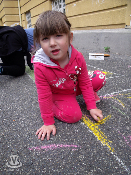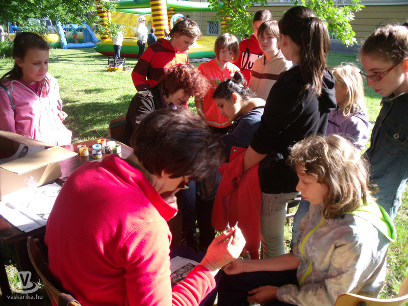 Délután során a rajzos kedvű diákok aszfaltrajzversenyen mérték össze tudásukat. Az ügyesebb kezűek bőrből és gyöngyökből karkötőt, nyakláncot készítettek maguknak a kézműves asztalnál.