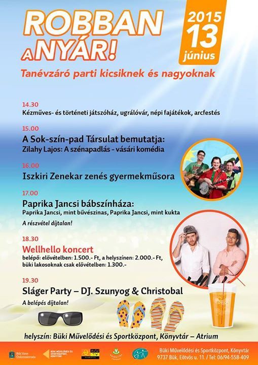 Robban a nyár!!! - Tanévzáró parti kicsiknek és nagyoknak Wellhellóval, Bükathlon családi- és sportnappal.