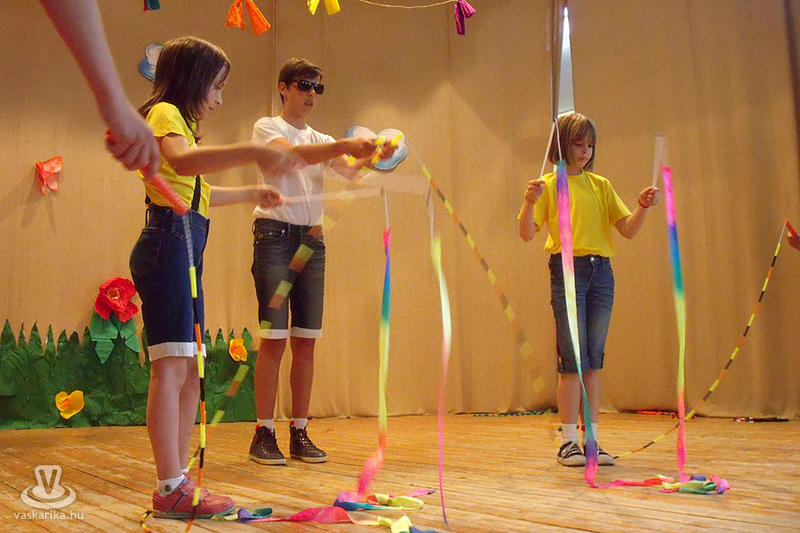 Festett tavaszi háttér mögötti pantomim előadást láthattunk, majd versek, énekek, zeneszámok következtek, melyeket Kocsisné Pethő Judit énektanárnő kísért, hol gitáron, hol hegedűn. Táncos bemutatók is szerepeltek a műsorban, ahol nagy tapsot kapott a jelmezes macska-duett. Persze a nagy siker köszönhető a közreműködő tanároknak is. A kollégium pár éve működő táncszakköre több produkcióval szerepelt. Záró műsorszámként Kaszner Éva - a nemzetközi hírnévre szert tett kötélugró, Bánhegyi Adrienn édesanyja - vezette kötélugrók teremtettek vidám, már a vakációra emlékeztető hangulatot.