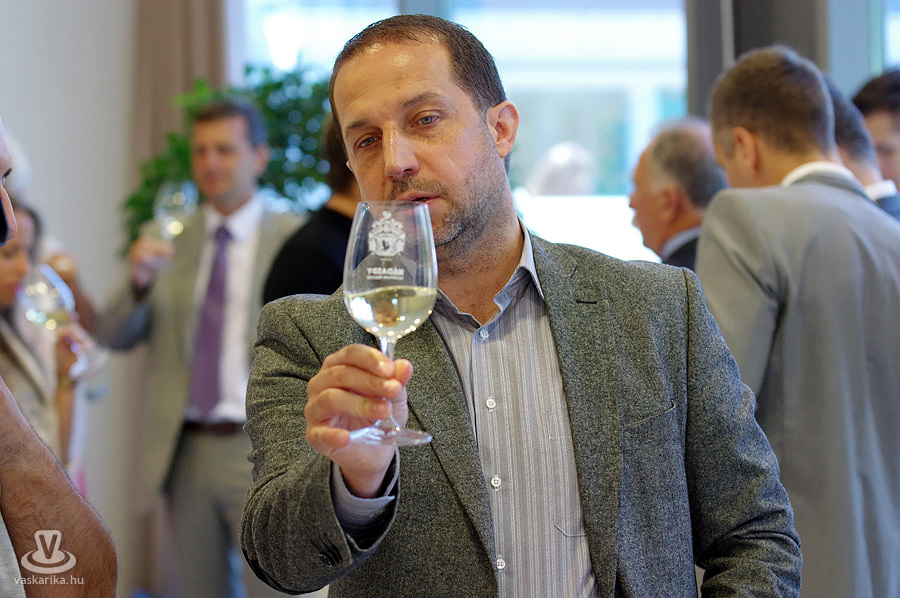 Wawrzsák László, a borverseny és a bizottság elnöke, okleveles borbíráló ismerteti a fesztivál borát
