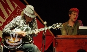 Tegnap más megközelítésből járt itt Mátyás: Gyárfás Istvánnal, napjaink legtöbbet foglalkoztatott jazzgitárosával és itt tanító kollégájával, Jeszenszky György dobossal közösen felidézték az 50-es, 60-as évek nagy Hammondosainak, Jimmy Smith-nek, Jack McDuff-nek zenéjét. Jimmy is minimum trióban játszott úgy, hogy a dob mellett Kenny Burrell gitárossal hangzásban új iskolát teremtettek az akkori jazz világában.