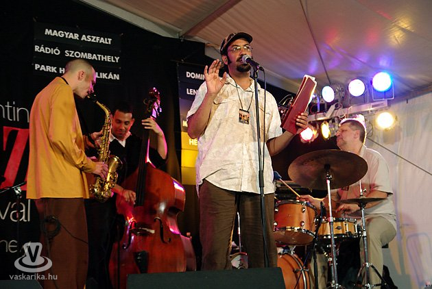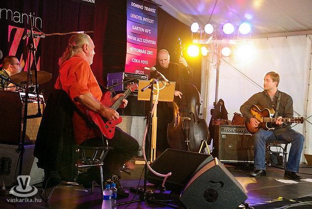 A szünetben - legnagyobb örömünkre - Erik Truffaz melódiája szűrődött ki a sátorból, a szabad levegőn "magukét fújókhoz". A francia trombitás után egy honi gitárzseni, minden magyar gitáros példaképe, Tibusz, Tátrai Trend névre keresztelt formációja mutatta be, milyen is az ő jazzes vonala. Elvitathatatlan, hogy talán ő a legjobb magyar rock gitáros, és az is, hogy Szűcs Antal Gáborral közösen a hazai latin húrnyűvőknek is feladták a leckét. Kíváncsian vártuk hát, mi sülhet ki az új irányvonalból, abban biztosak voltunk azonban, hogy nem free-jazz lesz terítéken. Nem is tévedtünk, közérthető jazzrock témák sorjáztak, néhol staccatoban, sokszor bellassulva, kitűnő ízes hangokon, folyamatos szájgitárral. A zenekar - Czibere József ütősök, Glaser Péter nagybőgő, Pintér Tibor gitár -, zseniálisan szolgálta ki a főnököt, ki mint mindig, kifogástalanul játszott. A négyszáz főre tehető publikum minden szám után hatalmas ovációval és tapssal köszönte meg a hangok tömkelegét, mint ahogy ezt tette az egész este folyamán. Részünkről pont azt kaptuk amire számítottunk: minőségi hangszerkezelést, bravúros témákat. Ahogy Tibusz megfogalmazta: "mi nem jazzt játszunk, inkább a rám jellemző dolgokat, olyan dalokat, amelyek az elmúlt egy-két évben születtek meg bennem. Kellemes, érthető és szerethető zenét. Amolyan körbeülős produkció lesz ez, hogy akár borozgatás, eszegetés közben is lehessen élvezni."