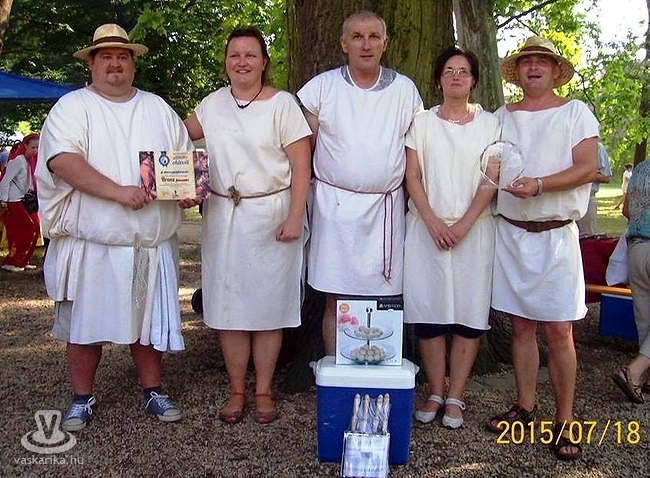 A főzőcsapat tagjai voltak: Csempesz Gábor, Baranyainé Polgár Eszter, Lantos Attiláné, Németh László és Szőnye László, akik a kánikulai meleg ellenére is remekeltek. A zsűri tagjait gusztusosan feltálalva várta a sok finom étel, mialatt a kórustársak énekelve igyekezték „emelni" a gasztronómiai élményt, és tették teljesebbé a korabeli képet.