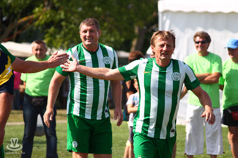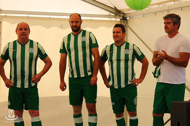 Három órakor léptek pályára a "főszereplők", akiket Bánki József mutatott be a közönségnek. Eljött Topor Antal, Keller József, Zoran Kuntic, Fischer Pál, Dukon Béla, Kriston Attila, Koller József, Holló Richárd és Szenes Sándor is, akik a csapatba a szponzoroktól "leigazolták"a halogyi Tóth Ferencet is, aki így pár percre felhúzhatta a zöld fehér mezt.