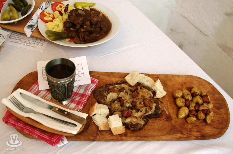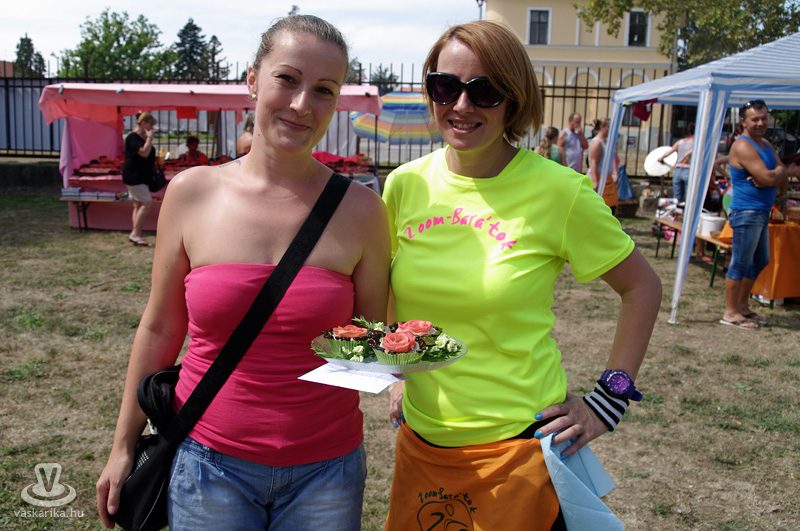 Ahogy már kora délelőtt a Batthyány kastély oldalkertjéhez igyekeztünk, messziről éreztük a finom illatokból, hogy itt valami készül. Azt is gondolhattuk, hogy nem maradunk éhesen, hiszen az oldalkert minden szegletében sült vagy főtt valamilyen finomság. Ahogy beléptünk a kertbe, arra gondoltunk, ha a Szabadság teret a város nappalijának nevezik, akkor bizony ez a hely most a város exkluzív éttermeként funkcionál. Gyorsan körbejártuk a helyet, kicsit megálltunk mindenhol, és azonnal a kóstolójegy vásárlásnál döntöttünk. (Itt kell zárójelben megjegyezni, hogy ilyenkor fotósnak lenni igazán hálás feladat, hiszen oda is bepillanthatunk, ahova lehet, hogy akkor és ott más nem nagyon, sőt, akár innen-onnan egy-egy jó falattal is kínálnak, csak úgy, a kóstolás kedvéért. Visszautasítani illetlenség, így mire minden étel elkészült, személyes kedvencként ott állt listánk elején a „Nemtudom" csapat medvehagymás tócsnija, amihez földimogyorós csirkemell társult. Kóstolójegyünket is itt adtuk le, és vidáman ültünk le egy jókora adag mellé.)