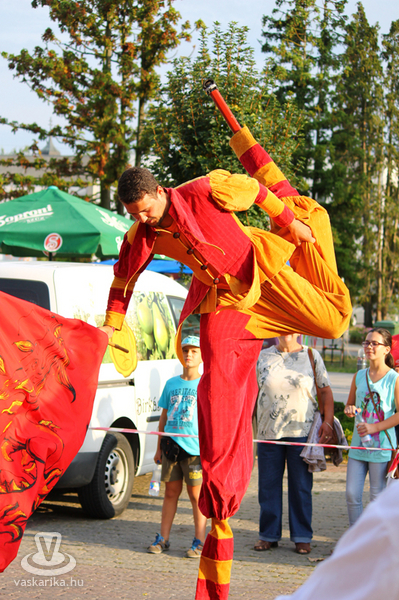 Augusztus 19-én, az ünnepi programsorozat utolsó napján a Szabadság téren Sárkányverő címmel a Madzag Gólyalábas Együttes gólyalábas, óriásbábos, tűzzsonglőr produkcióját láthatta a nagyérdemű, majd a Rába parton államalapító Szent István király és az új kenyér ünnepére került sor. Az eseményre Németh Szabolcs, világbajnok kenus hozta a nemzeti színű szalaggal átkötött kenyeret, s adta át Bebes István polgármesternek. Ünnepi beszédet V. Németh Zsolt környezetügyért, agrárfejlesztésért és hungarikumokért felelős államtitkár mondott. Képanyagunkat a Batthyány kastély oldalkertjének produkcióival zárjuk: Taszler Magdolna szabad-idomár lovasbemutatójában, valamint Erika és táncosainak hastáncbemutatójában gyönyörködhetett a nagyérdemű.