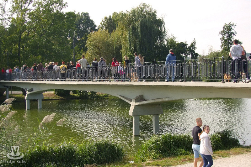 A nemrég megújult Csónakázótó környékén járva, arra is szerettek volna rámutatni, hogy a szigetről ki vannak tiltva a kutyák, de csupán az egyik irányból. Ezért most a kutyás csapat csupán a hidra ment fel, betartva a tiltó tábla utasítását, jelezve: ők sem tesznek nagyobb kárt a szigeten, mint a vandál, részeg csavargók. /Nagy Zoltán/