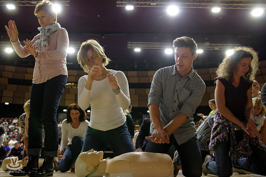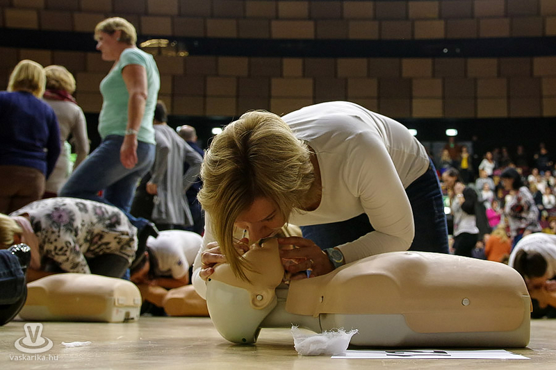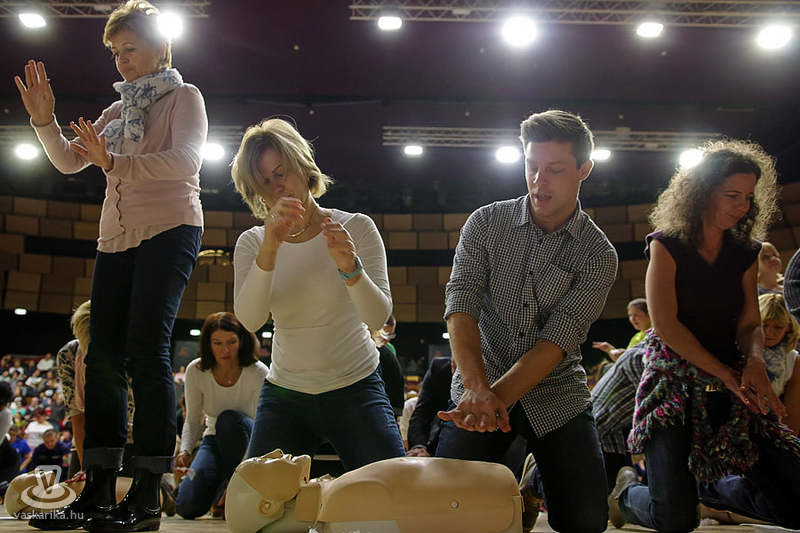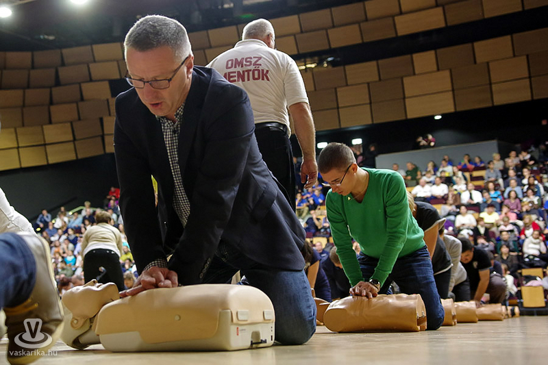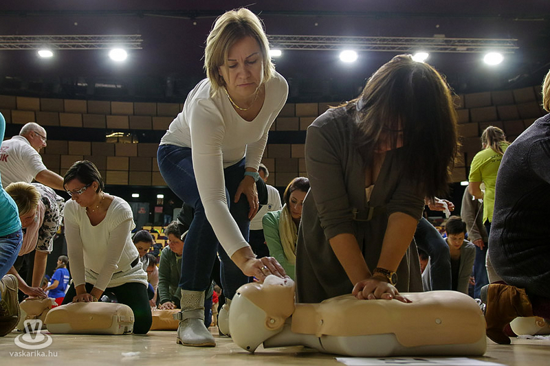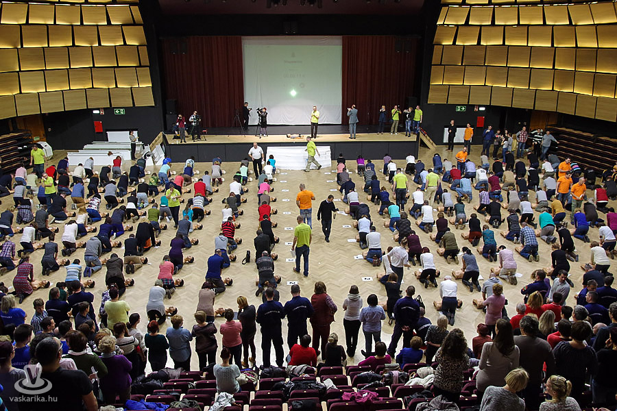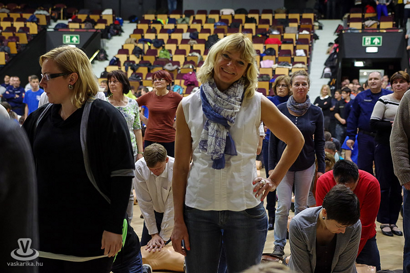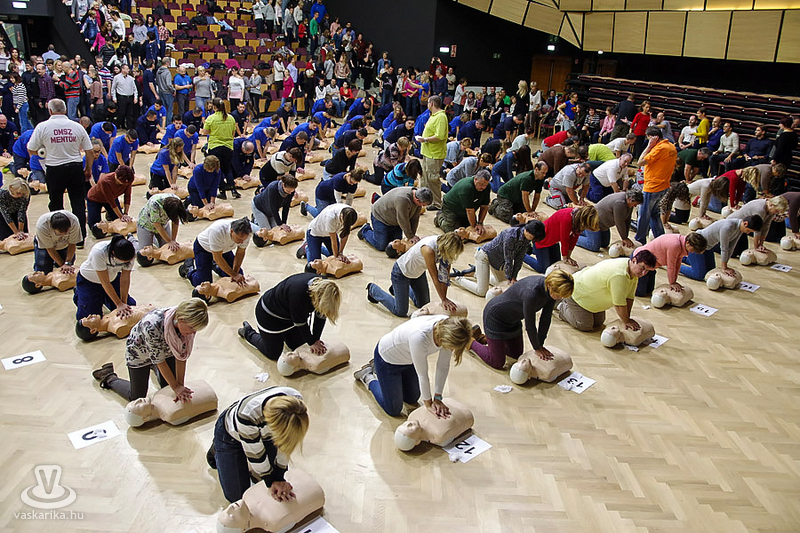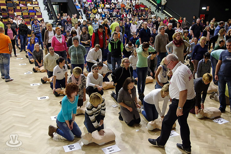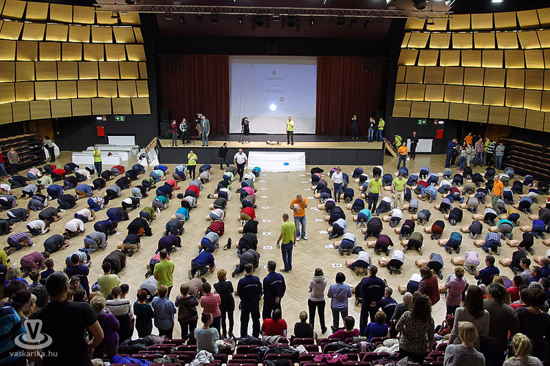 Stayin' Alive - a BeeGees legendás, eseményhez illő slágerére 600-an gyakorolták az alapvető reanimációs fogásokat pénteken délelőtt a megújult MSH-ban. Az újraélesztési rekordkísérlet sikeresnek bizonyult, Szombathely, a "segítés városa" pedig visszahódította a címet Dunaújvárostól.