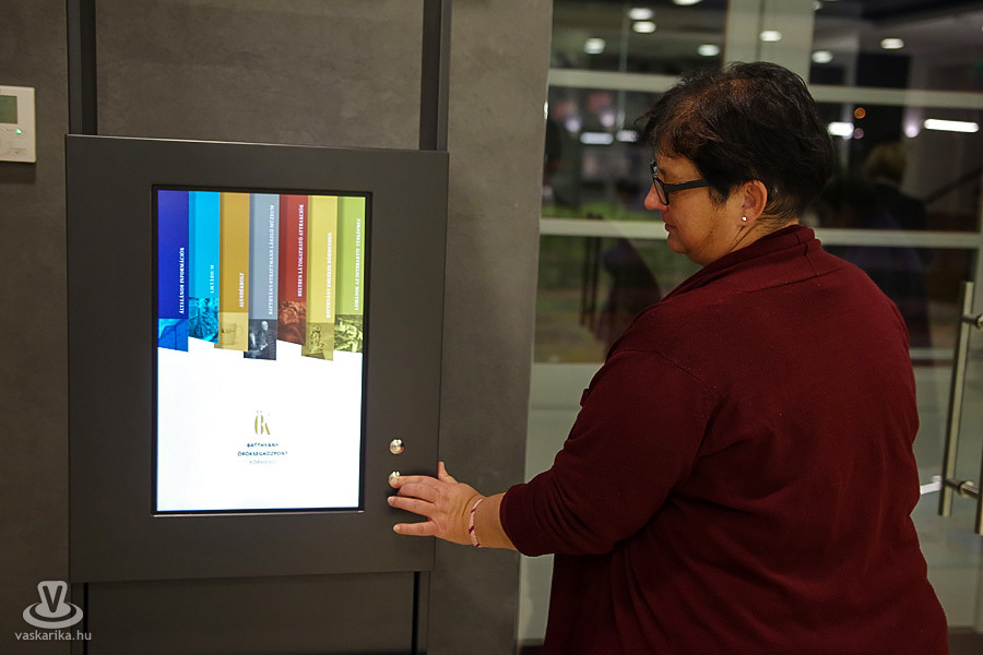 A későbbiek folyamán az a szándék, hogy élő kapcsolatokat alakítsunk ki ezekkel a turisztikai központotokkal és kölcsönösen tudjuk egymást ajánlani. A térképen valamilyen minimális információ is megjelenik, ahogy átvált képre, a bővebb információ azonban a slim liftes pulton vagy polcon található. Ez attól slim, hogy vékony, és attól lift, hogy van rajta egy gomb, amitől az egész monitor tud fel-le egyaránt mozogni. Ez azért lényeges, mert más a szemmagassága egy gyermeknek, egy felnőttnek, vagy éppen egy kerekesszékesnek, így ennek a segítségével lehet beállítani, kinek hogyan optimális. Ezen az információs ponton több menüpont is található, ezek közül az egyik a térképhez is ad további, kiegészítő információkat - zárta a földszinti látványosságok és funkciók bemutatását H. Vörös Márta.