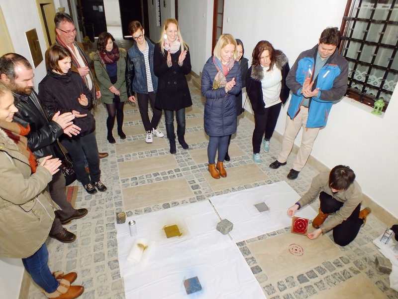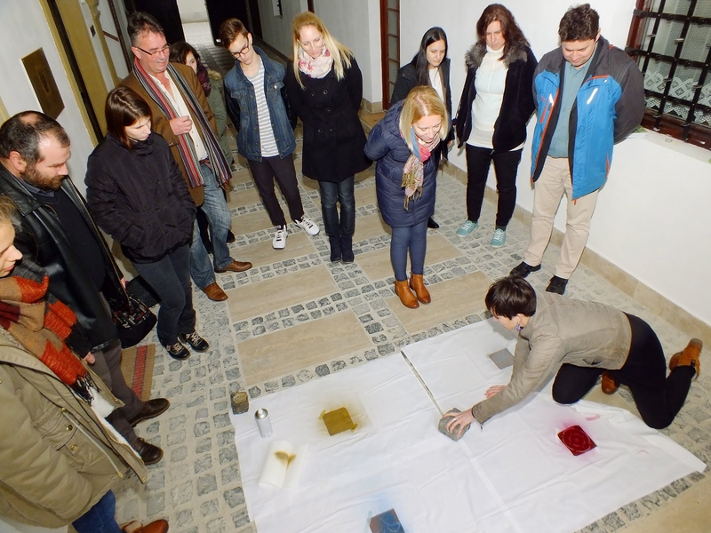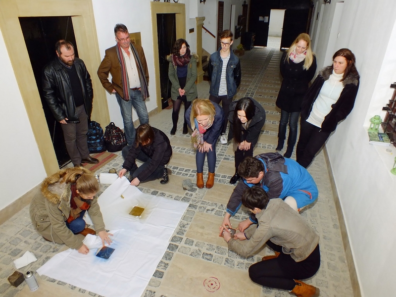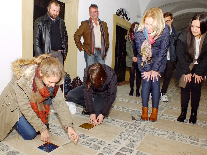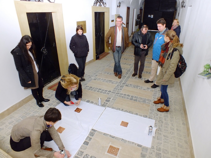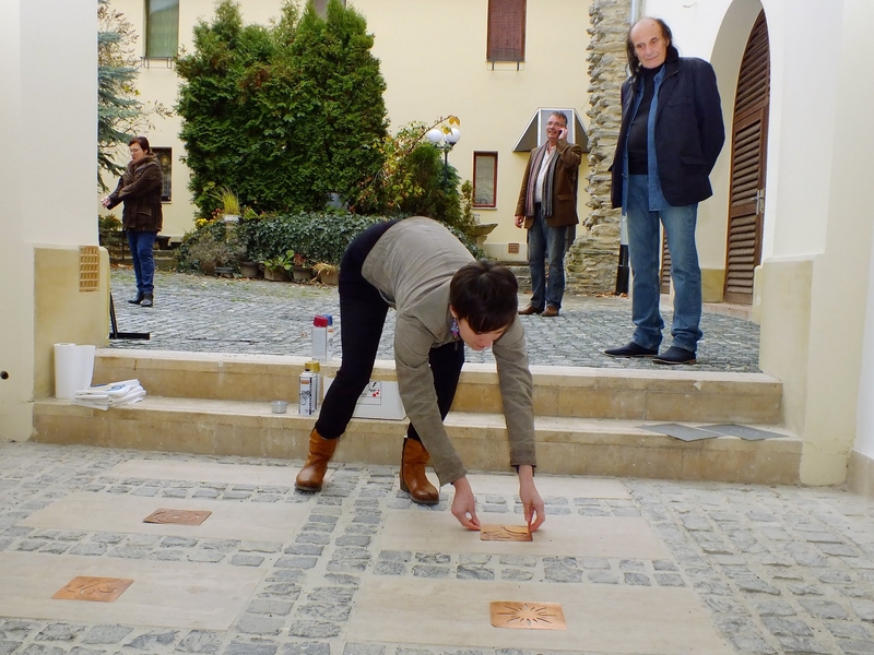 A pénteki rendezvényen a szervezők bemutatták a tervet, s az Európa Ház (Chernel u. 14.) kapualjában felfestették a jeleket. Dr. Bokányi Péter, a KRAFT program kommunikációs vezetője köszöntőjében Szerb Antal egy gondolatát idézte: a műalkotás elkészülte egy folyamat végét jelzi, de jelezheti egy újabbnak a kezdetét is, hiszen, jelen esetben az egykor megálmodott és elkészített szimbólumok életre kelhetnek Kőszeg macskakövein az itt élők és ide látogatók örömére és hasznára egyaránt.