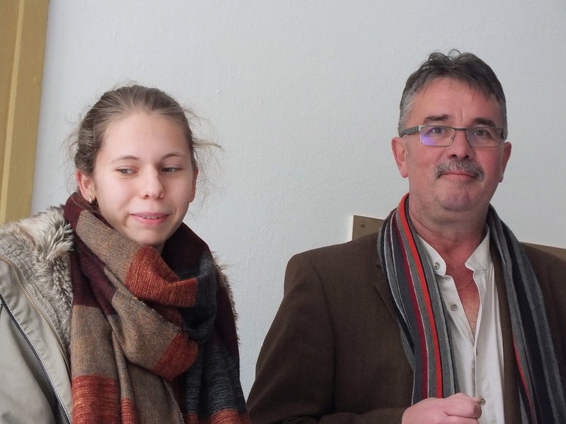 A jelek felfestésében és „leleplezésében" részt vett Básthy Béla, a város alpolgármestere, Keszei Balázs, a JMG igazgatója, az alkotó, Auer Alexandra és segítő tanára, mentora, Rónaszéki Linda is.