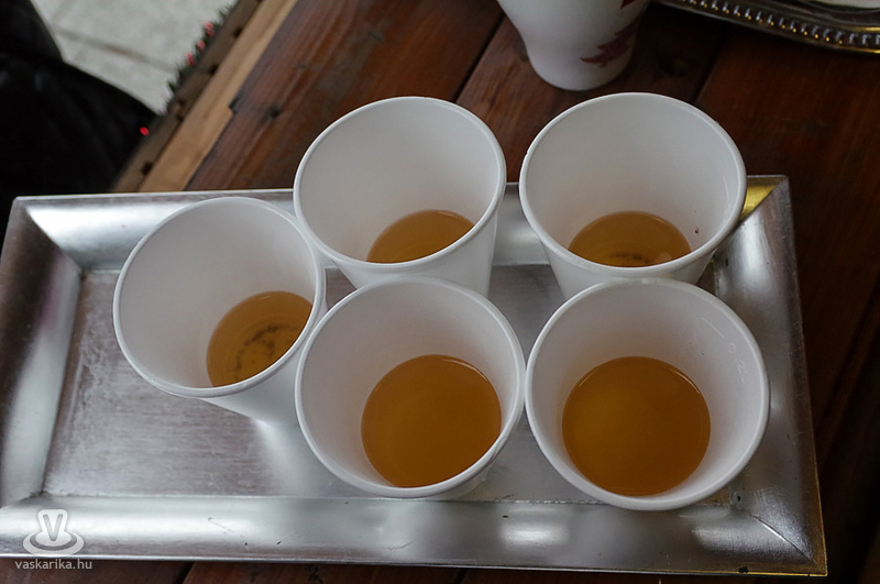 Már az első kortyok után éreztük: ez az igazi! Hőfokra, ízre, és az ebből kisejlő "házi titokra" nézve egyaránt. Ahogy utólag megtudtuk, a vörös és fehér bort (kékfrankos-muskotály-házi vörösbor) tartalmazó tételt birsalmával, citrommal és naranccsal ízesítették. Az Esterházy Pincészet forralt bora mind a négy zsűritagnál az első helyen végzett, jutalma pedig egy oklevél lett, amely a vásár ideje alatt pavilonját díszíti.
