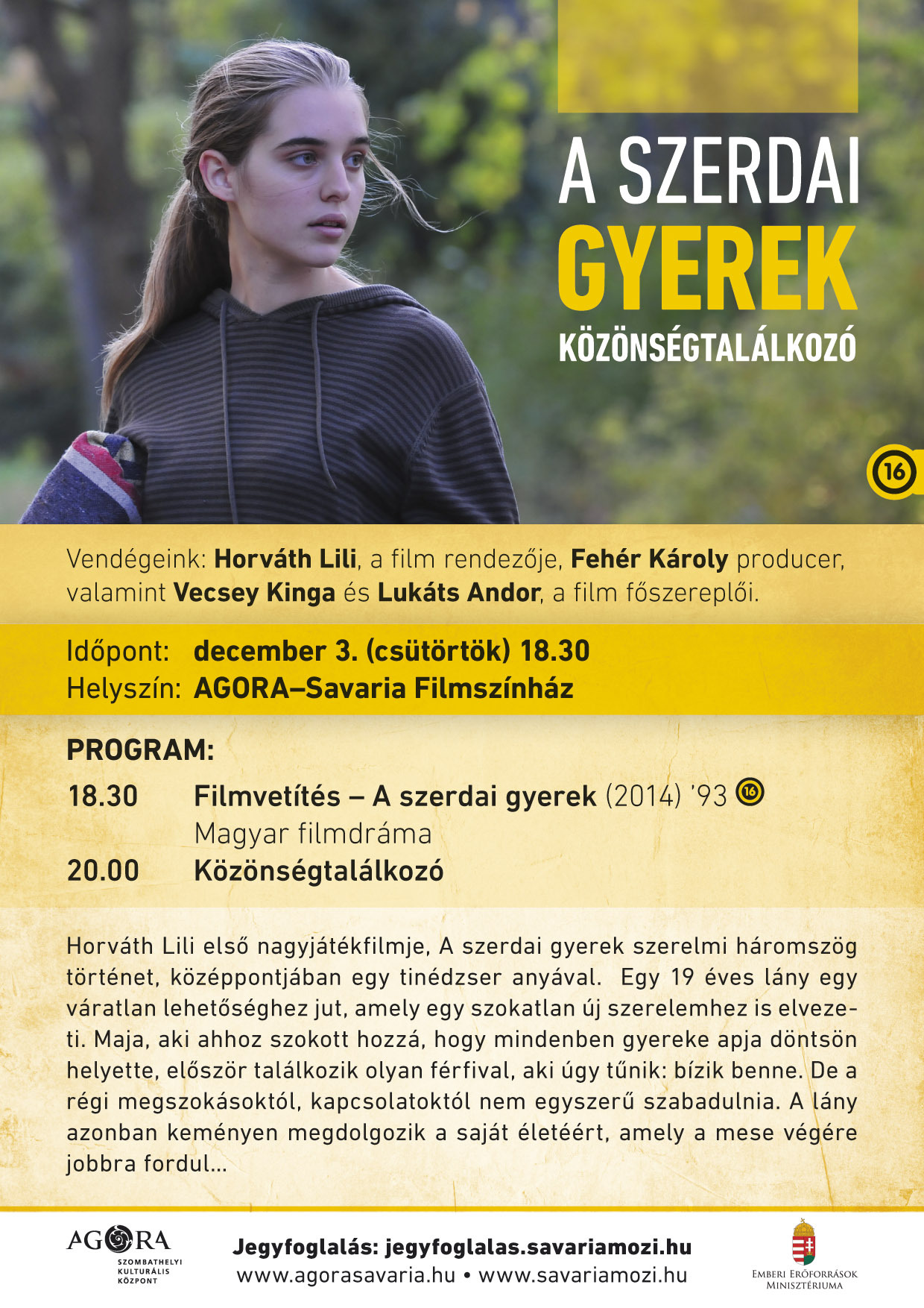 Szerdai gyerek - filmbemutató és közönségtalálkozó a Savaria Moziban
