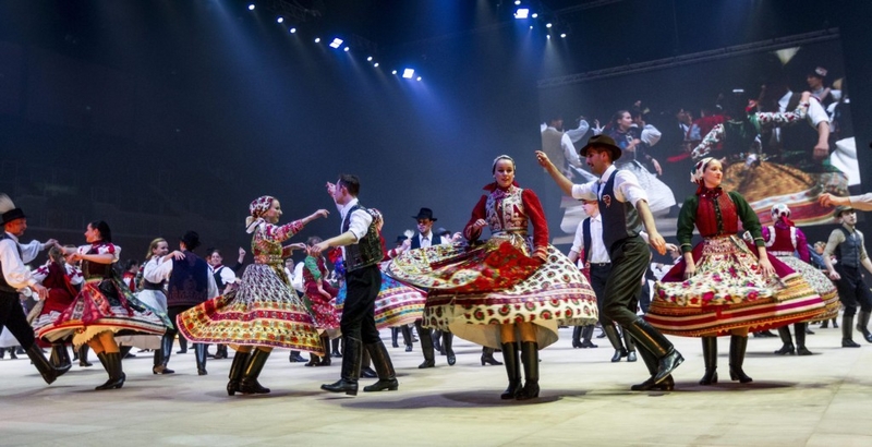 A Magyar Menyegző - Ezüstlakodalom című előadásának próbája a Papp László Budapest Sportarénában. A táncot a többi közt a Fölszállott a páva című tehetségkutató díjnyertes művészei adják elő. MTI Fotó: Szigetváry Zsolt