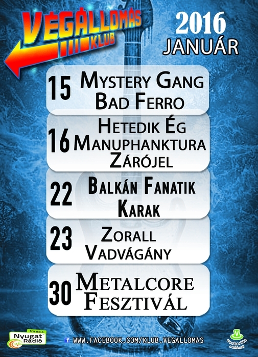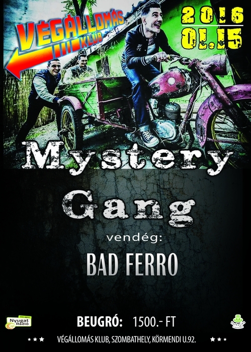 Január 15-én, pénteken az év első buliján mindjárt egy fergeteges rockabilly partival jelentkezik a Végállomás. Az ország egyik legrégebbi és legnépszerűbb rockabilly bandája, a Mystery Gang látogat hosszú idő után újra Szombathelyre. A bemelegítésről, egy kiváló helyi formáció, a Bad Ferro gondoskodik majd.