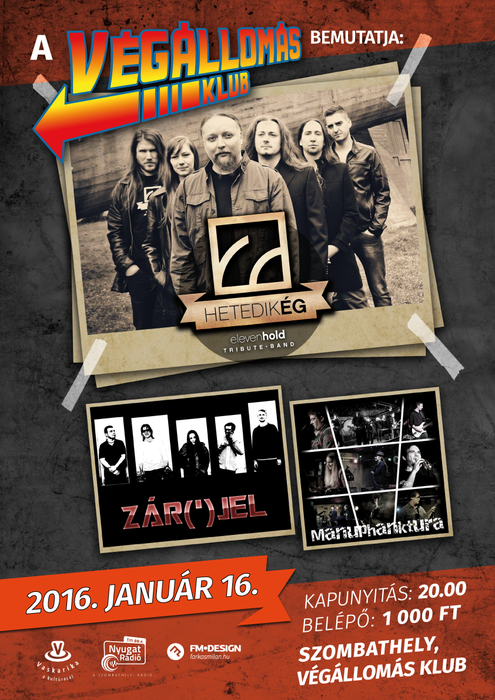 16-án, szombaton a Hetedig Ég - Eleven Hold Tribute lép a Végállomás színpadára, immár jó néhány saját szerzeménnyel is megörvendezteti a közönséget. Érkezik még a helyi tehetség Manuphanktura és a mosonmagyaróvári Zárójel.