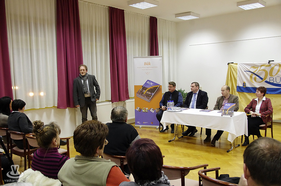 Teltház fogadta az érdeklődőket a Büki Művelődési Központban a Szülőföld Kiadó gondozásában, Magyarország Kincsestára sorozatban megjelent Bük című kiadvány bemutatóján. Az A4-es formátumú könyv nemcsak kinézetre kellemes, a súlya is említésre méltó. Tóth Tamás intézményvezető köszöntőjében elmondta, a kiadvány egy pályázatnak köszönhetően jelent meg, mely elsősorban a város mai arculatát tárja elénk. Dr. Kondora Bálint, a Vas Megyei Közgyűlés alelnöke egy anekdotával kezdte a könyv és a város méltatását. Sajnálatos módon otthon felejtette a szemüvegét, ezért látása némi kívánnivalót hagy maga után, ám Bük felé autózva az elé táruló kép még így is elégedettséggel töltötte el. Magyarország igazi kincsestár, melyben sok láda elfér, ezek egyike Vas megye, és azon belül is Bük, mely ékkőként tündököl. Ilyen gazdag kincs birtokában két dolgot tehetünk, vagy elrejtjük, vagy a többiek elé tárjuk. Bük városa az utóbbit tette, így jelenhetett meg a Szülőföld Kiadó sorozatának egyik legvastagabb könyve. A célközönség többrétű, a kiadvány egyrészt az idelátogató turisták és vendégek számára készült, másrészt a helyi lakosoknak is maradandó élményt jelent településük felfedezése. A kötet több, mint fotóalbum, korlenyomat is egyben.
