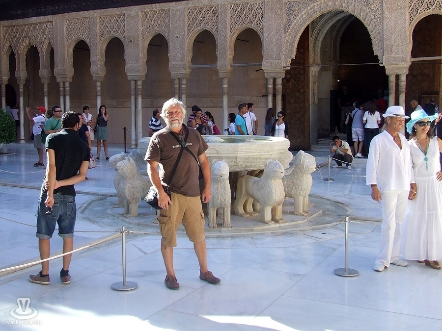 Ha valaki nem látta saját szemével az Alhambrát, nem is igazán tudja leírtak alapján elképzelni azt. Annyi ott a látnivaló, a kifinomult szépség, hogy sem leírva, sem szóban nem lehet elmesélni az ott látottakat. Én sem próbálom meg, fölösleges is lenne talán. Granadát valóban mindenkinek látnia kell. Ami nekem a legjobban tetszett, azok egyértelműen a Naszidák palotái voltak, a legtöbb turista számára ezek jelentik magát az Alhambrát. A paloták közül az El Mexaur a legrégebbi, benne olyan csodálatos látnivalókkal, mint az Aranyozott terem, a Követek terme, vagy a Színes Üvegablakok tornya. Innen visz az út a Comares palotába, ahol az elbűvölő szépségű Mirtusz udvar fogadja a látogatókat. Ez az Alhambra legnagyobb palotaudvara, amelyben a négyszögletű mélyzöld színű vízzel teli medencét mirtuszbokrok veszik körbe. A következő palota az Oroszlános palota, benne a leghíresebb látnivalóval, az Oroszlános Udvarral. A 12 márványoroszlánnal díszített szökőkút egyik érdekessége az, hogy bár az iszlám tiltja az emberek és az állatok ábrázolását, itt valami miatt ez alól kivételt tett. A legrégebbi épület, amely az Alhambrához sorolható a IX. században épült Alcazaba erőd, sárga falai szinte körbeölelik a palota együttest. A 27 méter magas Őrtoronyba felkapaszkodva csodálatos kilátás nyílik a városra és a Sierra Nevada hegységre.