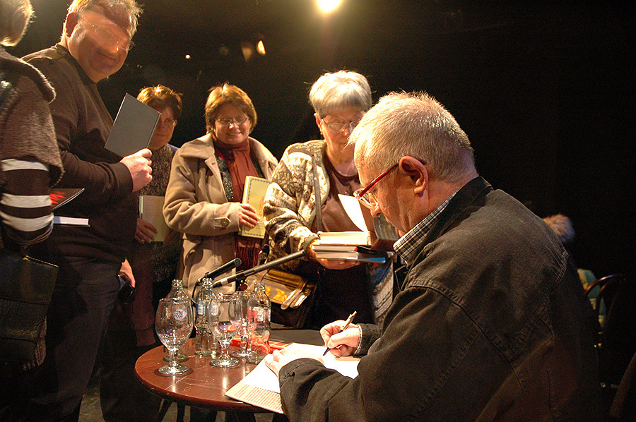 A múlt háttérbe szorult, a fej feletti kérdőjelek válaszra vagy megnyugvásra leltek, a sötétből előbukkanó manó megbékélt, lecsillapodott. - Március 10-én a Berzsenyi Dániel Könyvtárban az idei Bájoló utolsó felvonásában - egy visszatérő vendég - Poócza „Nonsense" András dalszerző, a Manuphanktura és az Andersen meghalt együttes frontembere volt Boros Ferenc vendége. Andrástól ezen az estén egyszálgitáros lírai életvillanásokat hallhattunk a folyamatosan íródó és végtelenbe tartó kislemezről.