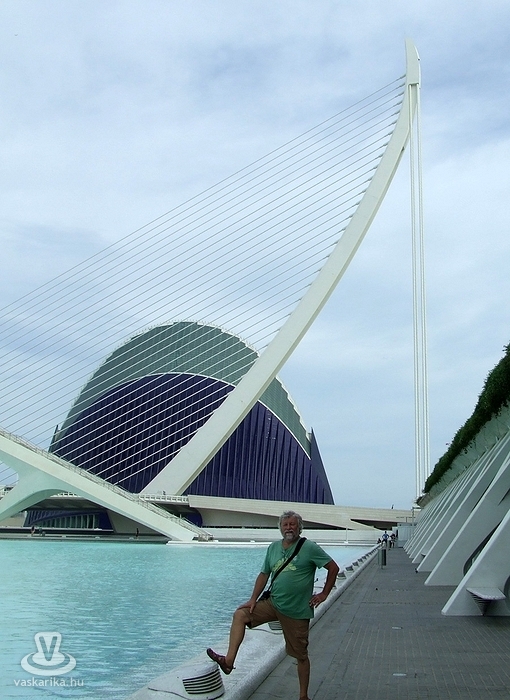 De mindez nem szegte kedvünket, hiszen hamarosan Valencia belvárosában álltunk, még napsütésben. Valencia, azon túl, hogy Spanyolország harmadik legnagyobb települése, jelentős kikötőváros, a Földközi-tenger legforgalmasabb kikötőjével rendelkezik. A városban minden van, ami a turistákat odacsábíthatja: történelmi városrész, strandok, kertek, valamint az, ami miatt mi is odalátogattunk: a neves spanyol építész, Santiago Calatrava által megálmodott és megépített ultramodern épületek. Ez utóbbiakkal kezdtük, hogy még napvilág végig tudjuk járni a Művészetek és Tudományok Városa (La Ciudad de les Artes y las Cientas) nevet viselő városrészt, amely a Turia folyó kiszáradt medrében létesült, hatalmas területen. A komplexum több futurisztikus épületből áll, ezek közül a planetárium, a L'Hemisfèric volt az első, amelyik megépült, és úgy néz ki, mintha egy hatalmas krokodilszem nézne ki a vízből.