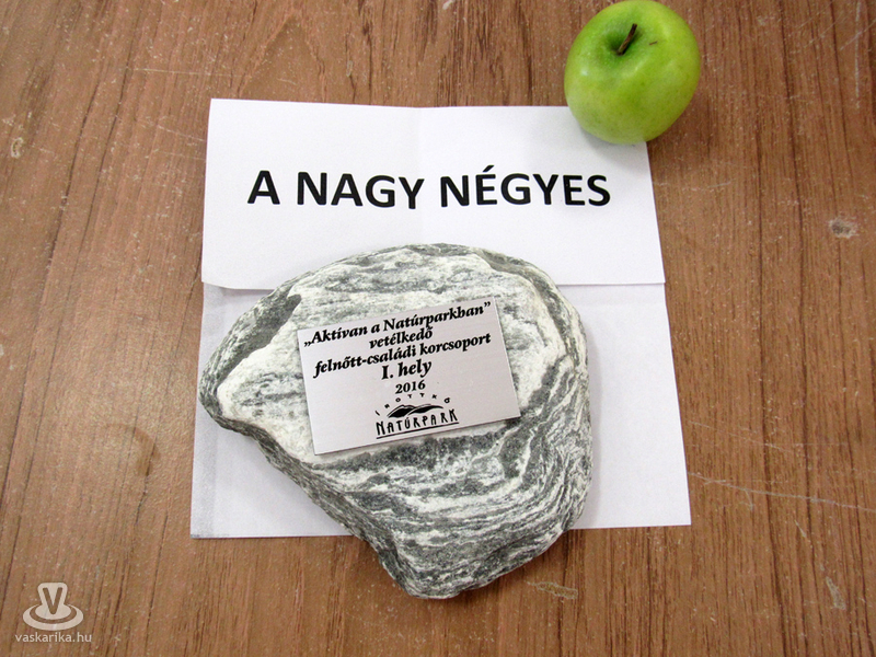 A jó hangulatú és izgalmas verseny díjazása során fődíjként minden korcsoport 1. helyezettje „ÍROTT KÖVET" kapott az egyesülettől, e mellett a döntőben résztvevő 1-3. helyezett csapatok lelkesedését és kitartását ajándékcsomagokkal jutalmazták a szervezők. A csomagok tartalma az egyesület és a szponzorok által felajánlott díjakból álltak. A nyeremények belépők, pólók, DVD-k, könyvek, térképek, helyi termékek, édességek, csokoládék, virágok, ajándéktárgyak és utalványok voltak. A döntő fődíja a Szombathelyi Erdészeti Zrt. által felajánlott 28 fős, 2 napos teljes ellátással biztosított Stájer-házi tartózkodás erdei programmal, melyet a 7-8-. korcsoport nyertesei, a Gyöngyöslányok nyertek meg.