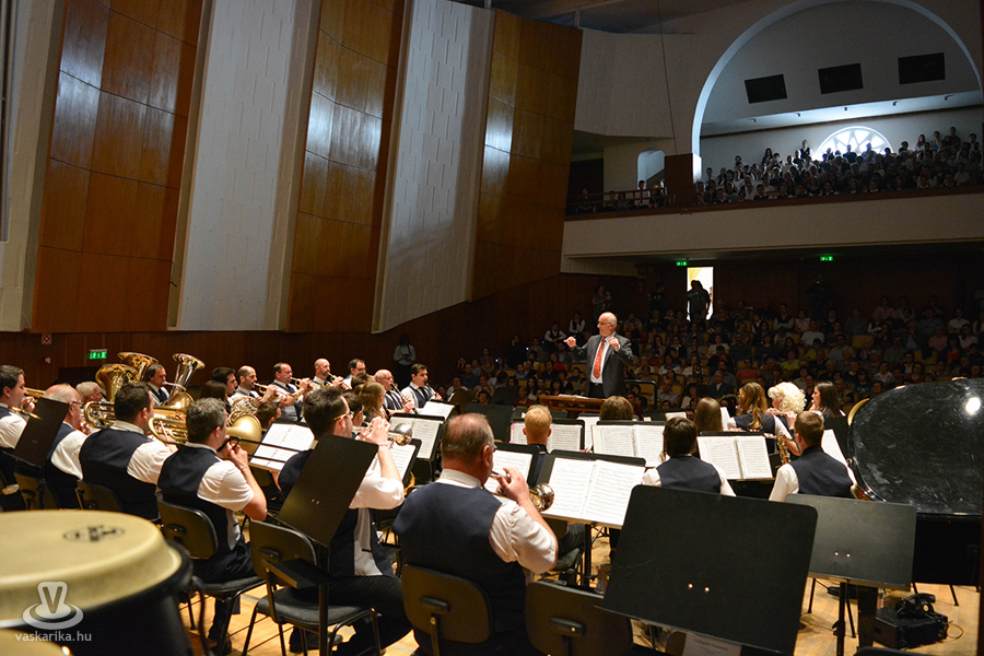 Az estet a csepregi fúvósok nyitották Iliás Attila vezényletével, egy a csodás akusztikájú teremhez méltó koncerttel. Felcsendült többek között Julius Fucik által írt Sempre Avanti induló illetve az Attila induló is de nem volt hiány a könnyedebb dallamból sem. A zenekar által elutazhattunk a távoli Mandzsúria csúcsaira is. A koncert végén nem maradhatott el a közönség vastapsa, ami igazolta, hogy a próbákba befektetett munka és energia megtérült. A ráadás számban a csepregiek ismét megénekeltették a nagyérdeműt, hiszen a sokak által jól ismert Honvéd banda induló dallama csendült fel.