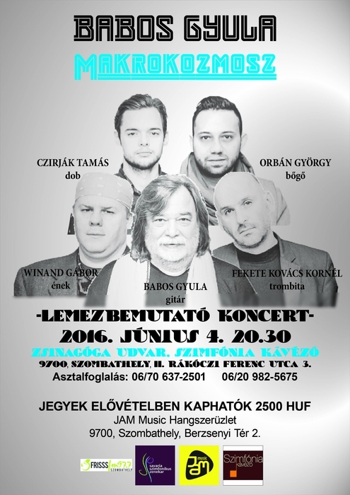 Másfél éve alakította meg a Makrokozmoszt, melynek egy hónapja tartott budapesti lemezbemutató koncertje után most szombaton a vasiak is megtapasztalhatják az örök alkotólázban égő zenész-zeneszerző alkotásait. Június 4-én a Zsinagóga Udvarban ad koncertet Babos Gyula jazz gitáros és csapata.