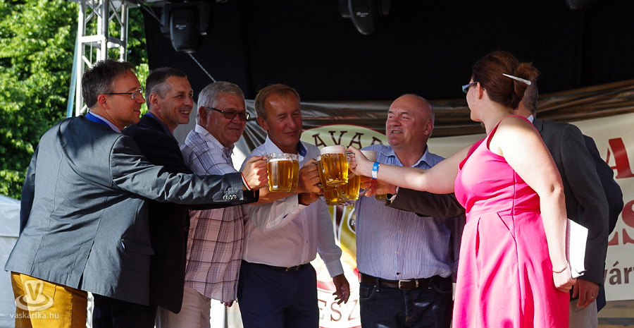 Koccantak a Kozel-es korsók a színpadon, a közélet és a szakma prominenseinek is jól esett egy-egy korsó hideg nedű a fülledt nyárelőben.