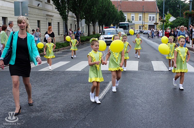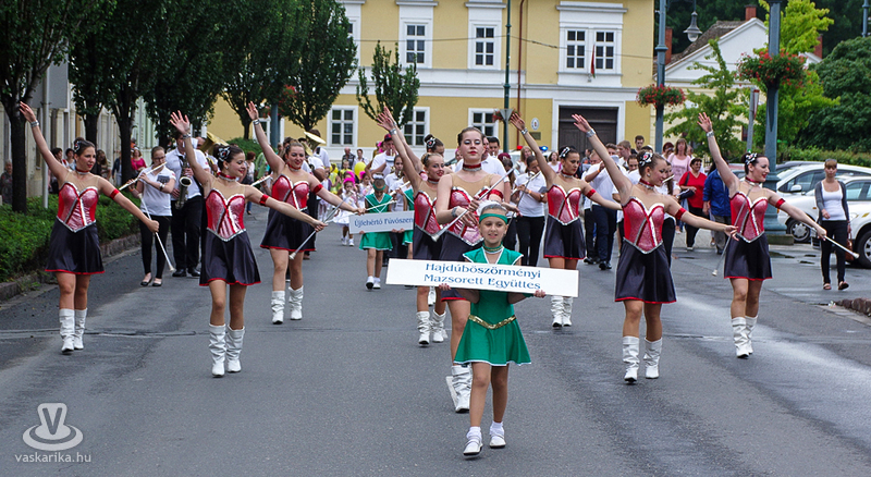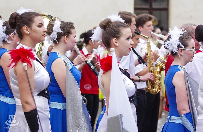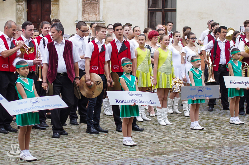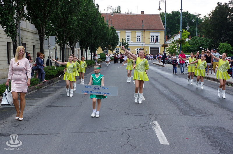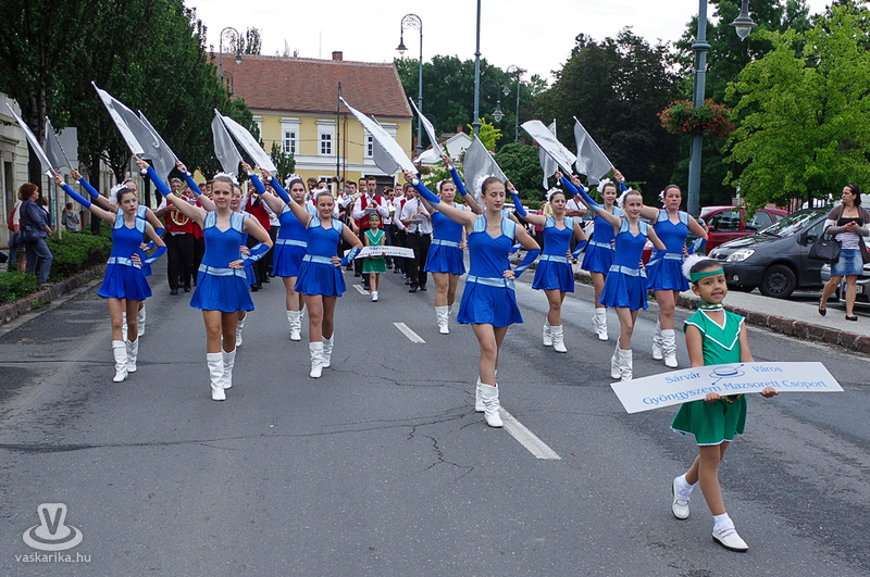 A szombati program hagyományosan a csoportok felvonulásával kezdődött: a Gyógy- és Wellnessfürdőtől, a Rákóczi úton át a Nádasdy-várba vonult a fúvós-mazsorettes menet. A várudvaron a mostoha időjárás ellenére is szépszámú érdeklődő várta a fiatal botforgatók bemutatóját. A szabadtéri színpadon - a pár órával előtte lezúduló eső miatt - balesetveszélyessé vált a fellépés, így a várudvar kövezetén kezdte műsorát a Sárvári Mazsorett Együttes. Az időjárás azonban közbeszólt, így a műsor további része a vár fedett helyiségében folytatódott.